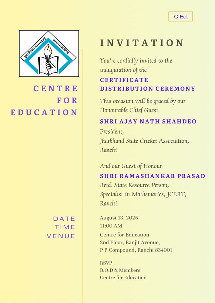 CED (Centre for Education - An Institution for Socio-Educational Development & Research) serving the Society for last 30 years , since 1977. Its motto is "Serve to All" & "Learn to Earn".